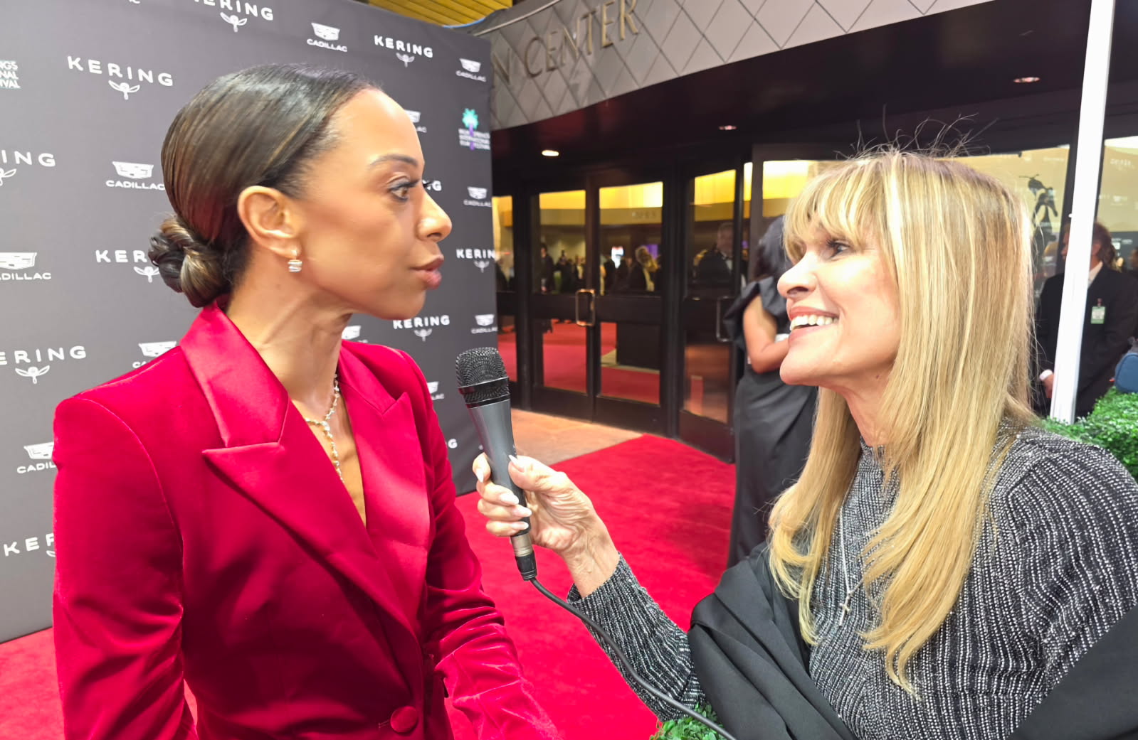 and the reason Margie got a great interview because she once was a model who did a big-time Modeling Shoot in Miami, Florida- on a big Yacht, for a major TV Commercial with Beverly Johnson, who was so happy to see Margie again! She told her she would send here some of her beauty products from her skincare line! In the above and below photos you can see Margie interviewing Beverly on the red carpet.